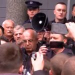 Kreu i Partisë Demokratike, Sali Berisha, ka dalur nga selia e PD-së për të nisur protestën