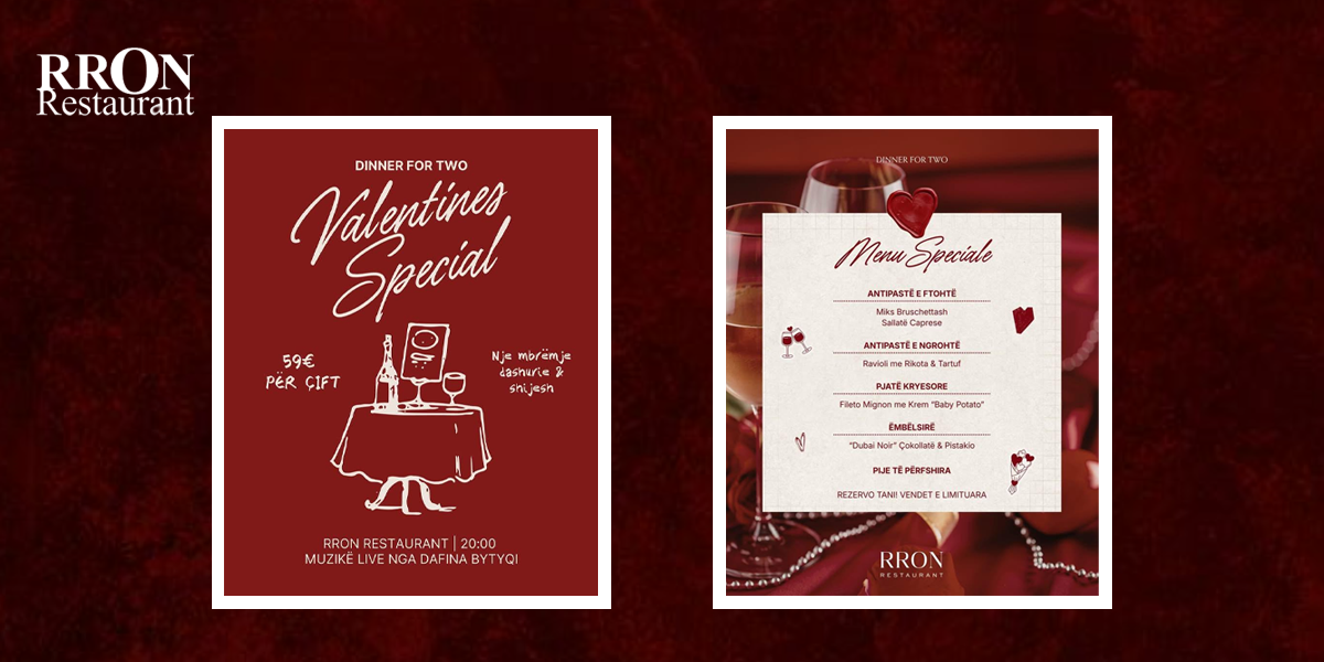 Ky Shën Valentin, dashuria merr shije dhe elegancë në Rron Restaurant, Veternik. Për të gjithë çiftet që dëshirojnë të festojnë ndryshe, Rron Restaurant ofron një mbrëmje të veçantë, të mbushur me romancë, ushqim cilësor dhe atmosferë të ngrohtë.