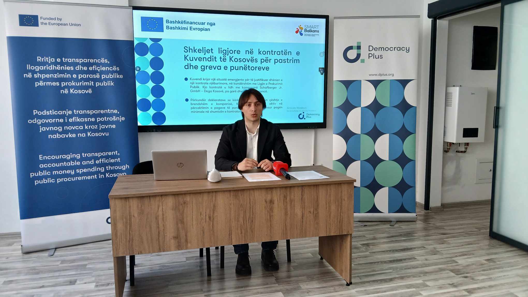 “Në vitin 2023 kuvendi i Kosovës si institucion publik kontrakton kompanitë e pastrimit përmes kontratave publike dhe shpërbleu me kontratë “Schafberger Jr. GmbH – Dega Kosovë”, për shërbime mbështetëse me një kontratë në vlerë 214 mijë euro e cila do të zgjaste deri më 30 prill 2024. Për vitin 2024 Kuvendi planifikoj nisjen e procedurës së re të prokurimit më datën 22 janar në mënyrë që të kishte katër muaj afat deri te nënshkrimi i kontratës së re e cila do përfundonte, pra me 30 prill 2024. Megjithatë, Kuvendi u vonua në inicimin e kësaj procedure dhe e inicioi këtë procedurë tek me datën 20 mars 2024 duke caktuar si afat të fundit për dorëzimin e ofertave për prcesin e ri të tenderimit, pikërisht ditën kur përfundonte kontrata e vitit 2023. Kjo vonesë dy mujore në procedurën e re të Kuvendit të Kosovës garantoj se Kuvendi do të mbeste pa shërbime mbështetëse, pasi kontrata e re nuk mund të nënshkruhej në ditën e fundit të dorëzimit të ofertave”, tha Dragusha.