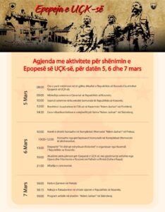 Institucionet e Republikës së Kosovës kanë publikuar agjendën zyrtare të aktiviteteve për shënimin e Epopesë së UÇK-së, që do të zhvillohen më 5, 6 dhe 7 mars në disa qytete të vendit.