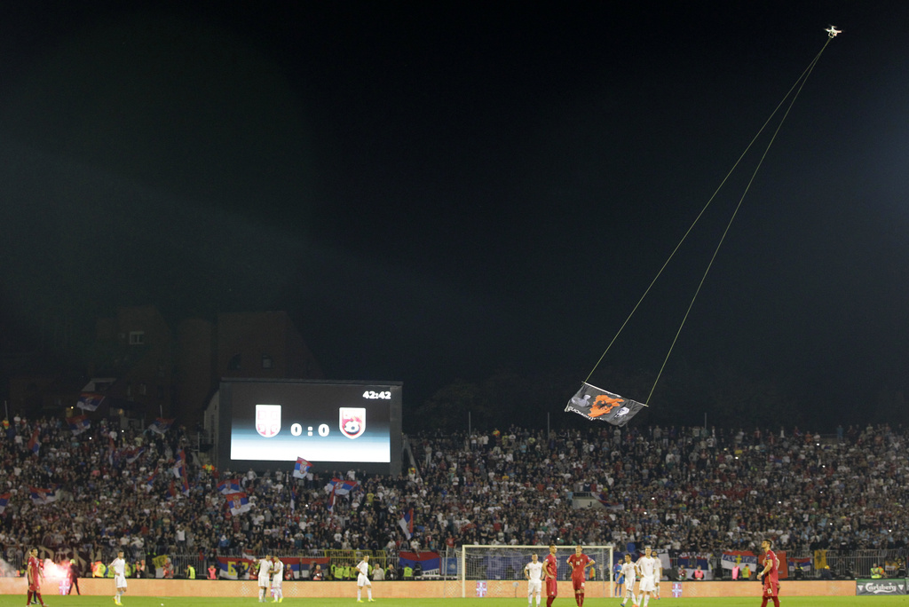 Shtohet se publiku i futbollit është ende në dijeni se ndeshja e vitit 2014 midis Serbisë dhe Shqipërisë u ndërpre për shkak të incidenteve të rënda. Pastaj një dron me flamurin e “Shqipërisë së madhe” u shfaq mbi stadium dhe pasoi një përleshje masive midis lojtarëve, por edhe me personat e sigurisë.