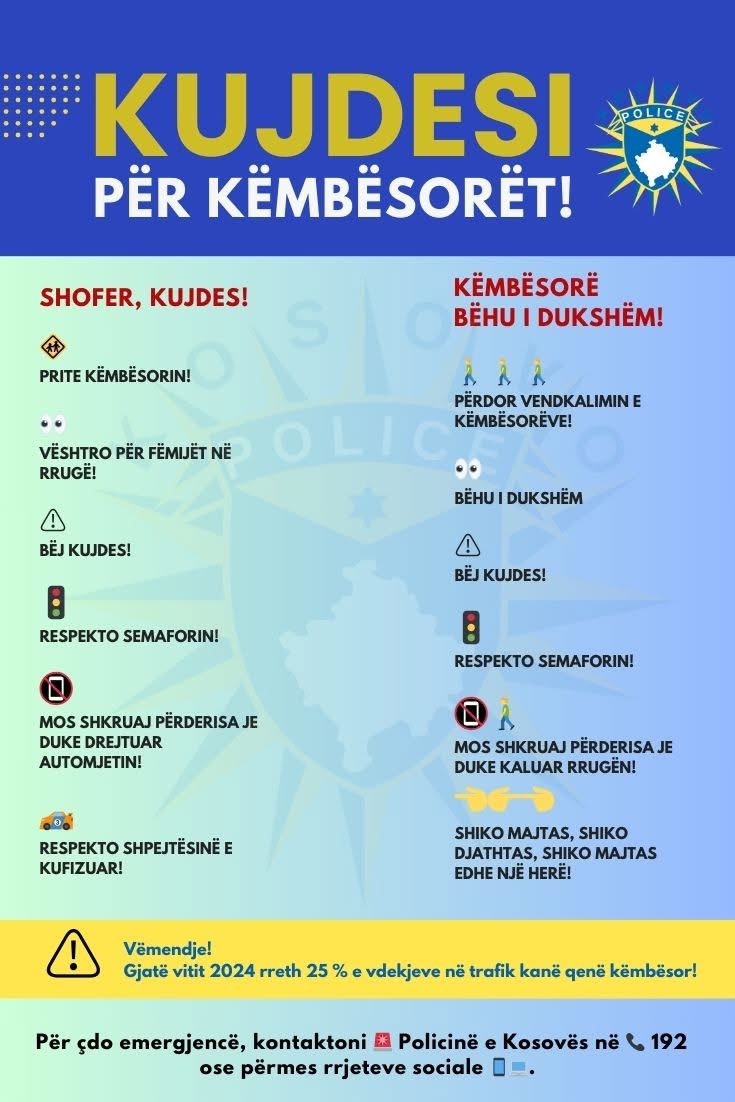 📞 Për çdo emergjencë, kontaktoni 🚨 Policinë e Kosovës në 📞 192 ose përmes rrjeteve sociale 📱💻.