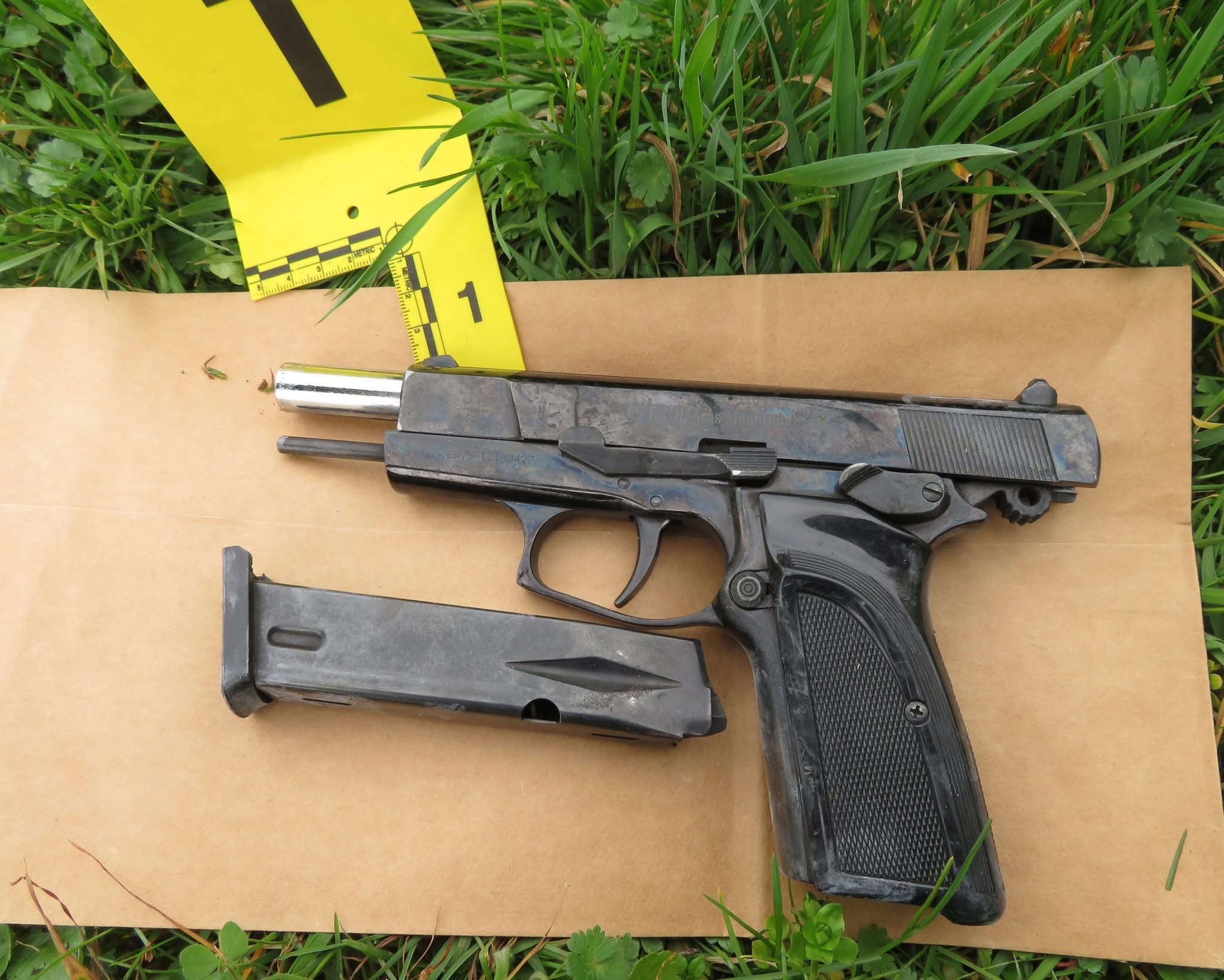 Gjatë kontrollit tek të dyshuarit është gjetur dhe konfiskuar edhe një armë pistoletë e tipit EKOL e kalibrit 9 mm e cila do të përdoret si provë për Gjykatën.