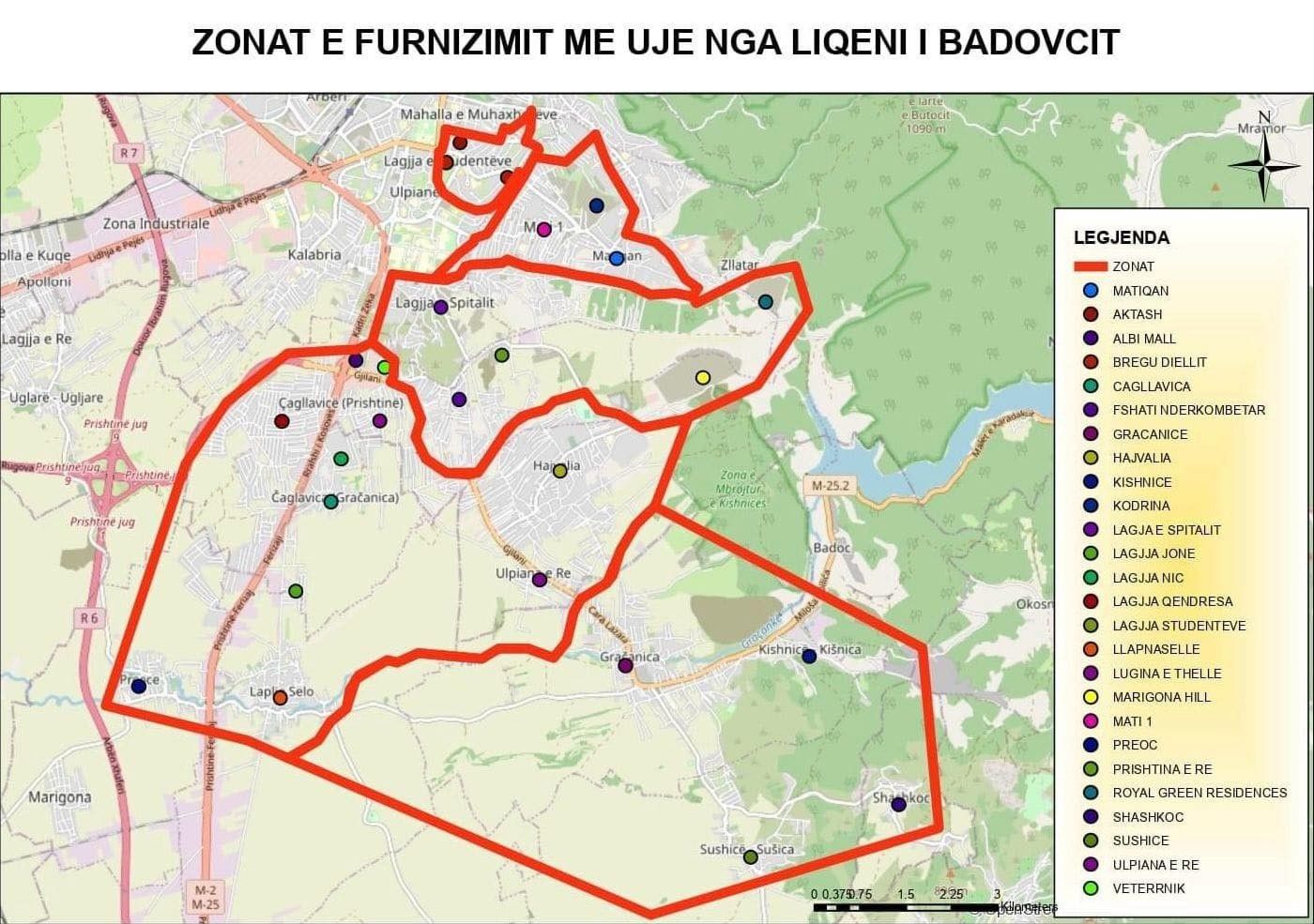 Zonat e prekura përfshijnë: Graçanicën dhe fshatrat përreth, Hajvalinë, Veternikun, Lagjen 038, Lagjen Qëndresa, Qëndresa Home, Swiss Village, fshatin Preoc, Çagllavicën, rrugët Behar Begolli, Richard Holbrooke, Shkupi, Holger Petersen, Malush Kosova, Lagjen Qershia, Lagjen NIC, Matiçanin (drejtimi nga Pallati i Drejtësisë), fshatin ndërkombëtar, rrugën Muharrem Fejza, Enver Maloku, Lagjen Kodrina, objektet Tregtia, Iliria Building, Standardi, dhe zona të tjera si Bregu i Diellit (qendra dhe rreth Albi Mall), shkolla Ismail Qemali, rrugët Mehmet Gradica, Hyzri Talla, Qamil Bala, dhe pjesa “te Xhambazët”.