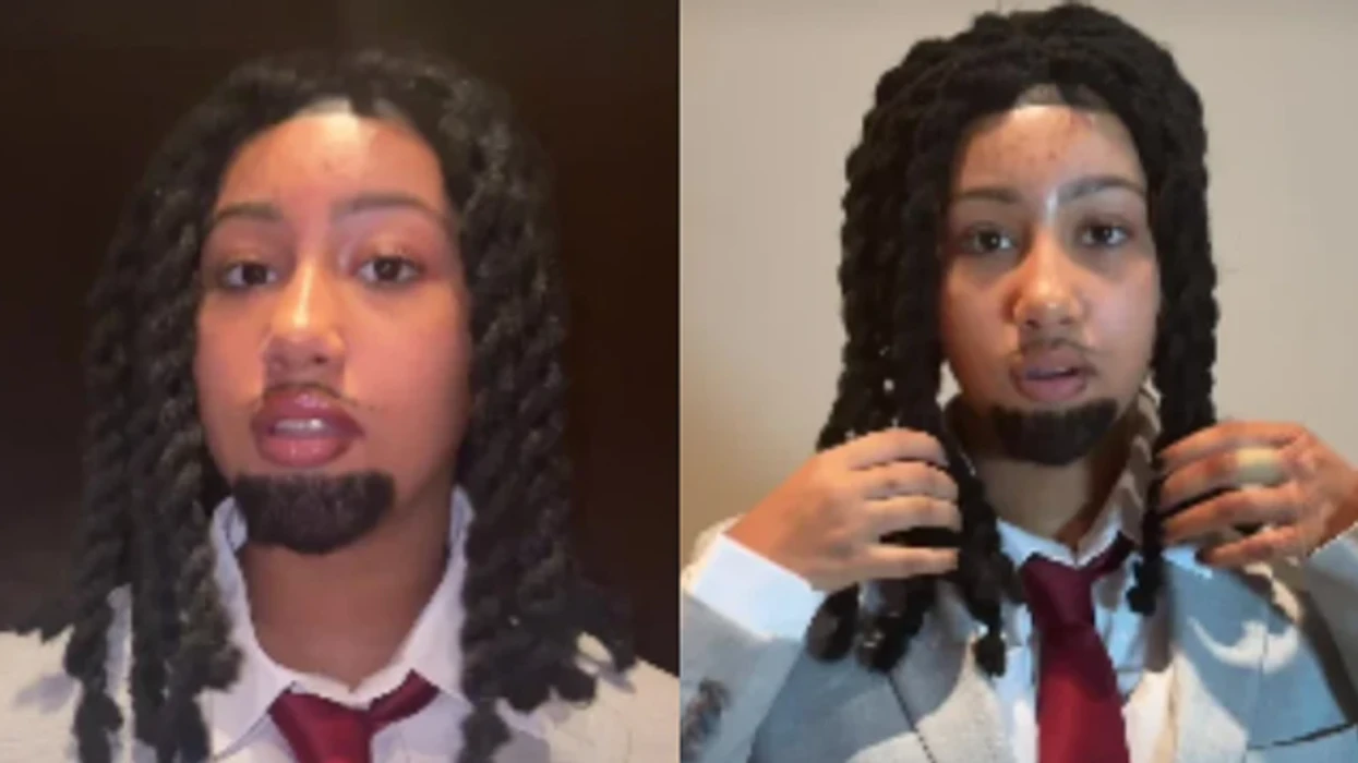 Për transformimin, ajo mbante veshur një xhaketë gri, kravatë të kuqe, paruke dhe mjekër artificiale, ndërsa shoqet e saj zgjodhën kostume të frymëzuara nga personalitete të tjera të njohura të internetit.